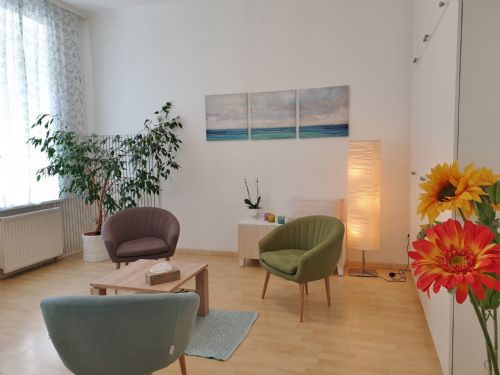 Die Psychotherapie findet in ruhiger und angenehmer Atmosphäre in einem hellen und großen Raum statt.