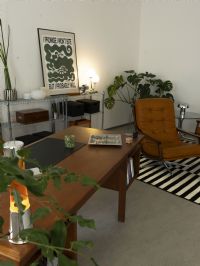 Praxisraum 1 ist mit Besprechungstisch, Liegecouch bzw. Sitzecke eingerichtet. Er eignet sich für Einzeltherapie, Paartherapie, Coaching, Training, Supervision und Kleingruppen bis zu 4-5 Personen.