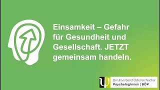 » [...] Pressekonferenz "Einsamkeit – Gefahr für Gesundheit und Gesellschaft. JETZT gemeinsam handeln!" statt. Gemeinsam mit Institutionen wie Caritas, Diakonie, Hilfswerk, Armutskonferenz, der Österreichischen Krebshilfe, dem Österreichischen Rotes Kreuz und der Allianz onkologischer PatientInnenorganisationen setzte der Berufsverband Österreichischer PsychologInnen (BÖP) ein deutliches Zeichen für eine umfassende, Unterstützung aller betroffenen Menschen in Österreich[...]«